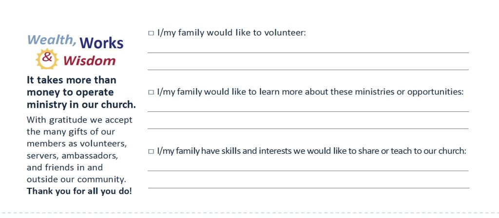Stewardship reflects our commitment to making God’s love known through the realities of human life and our use of all that God has given us. It is also our service to God’s world and our care of creation. Parish members are encouraged to make an annual stewardship pledge. This pledge represents their specific Christian commitment to “work, pray, and give for the spread of the kingdom of God” (BCP, p. 856).